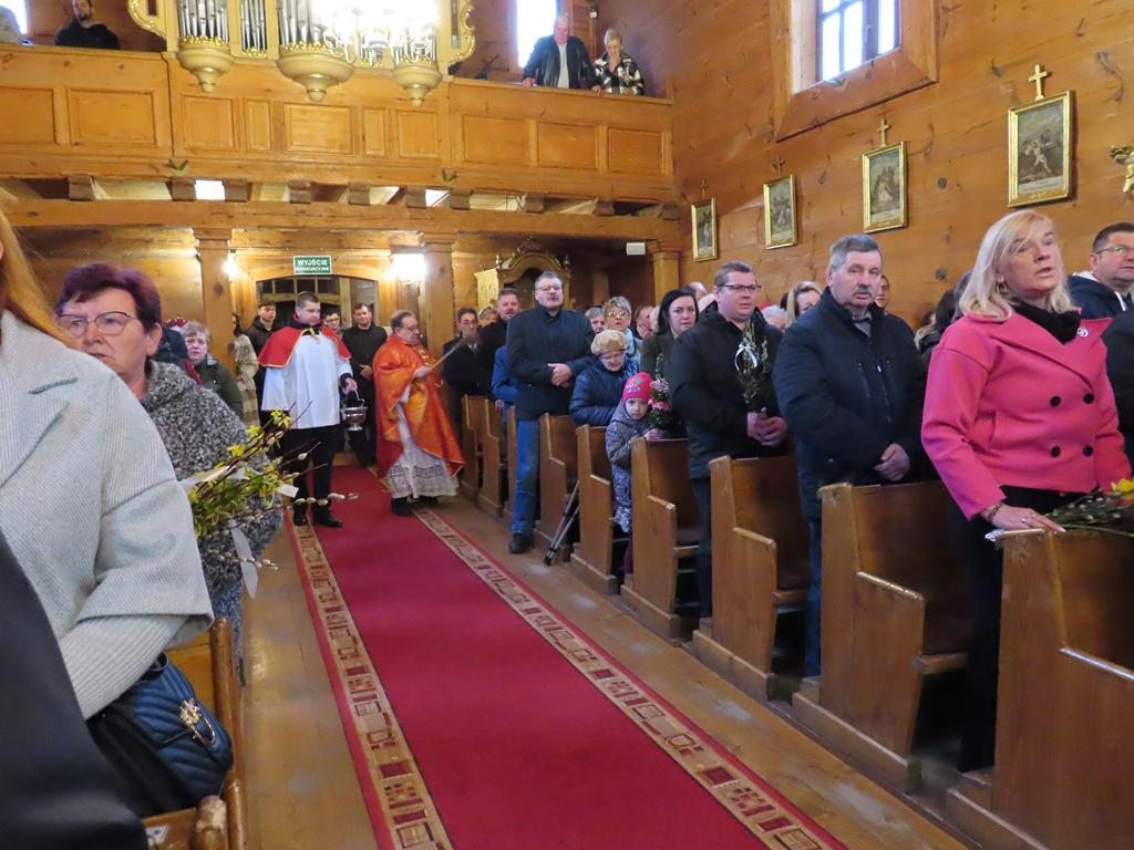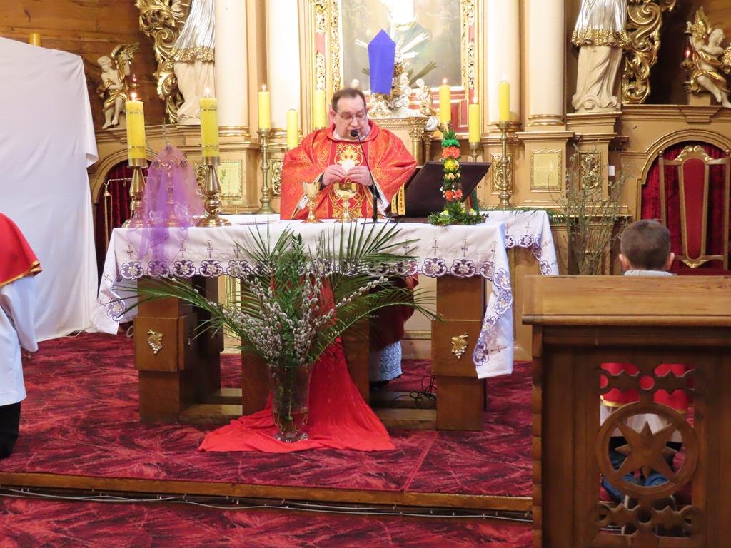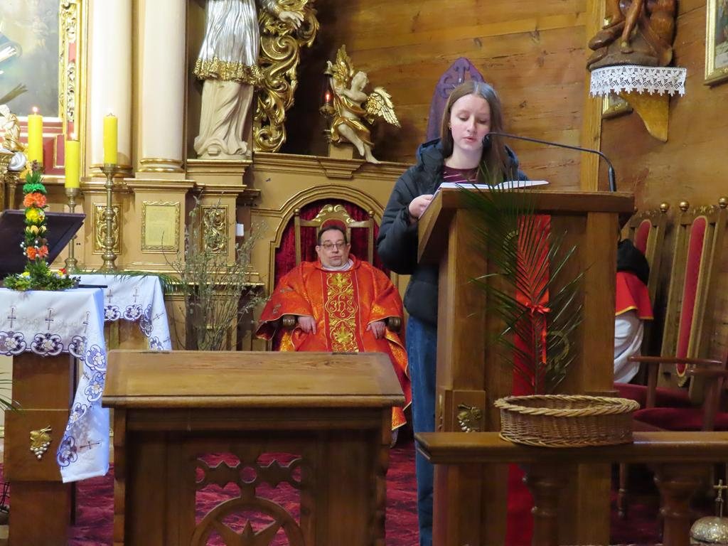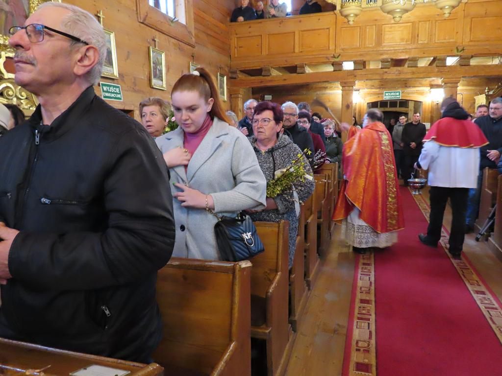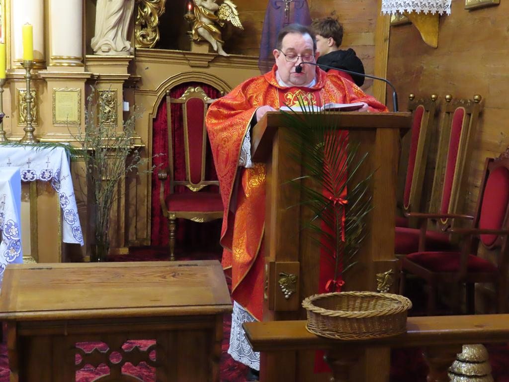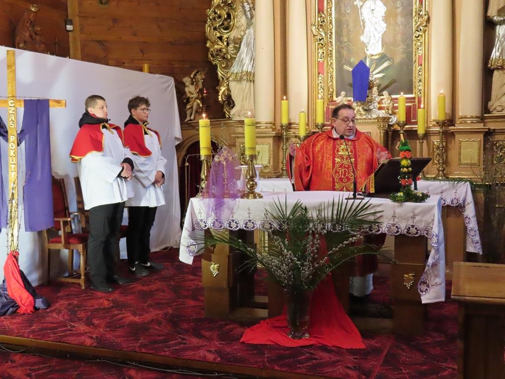 Parafianie, wierni tej tradycji, przynieśli do kościoła gałązki wierzbowe i palmy, które przed każdą Mszą św. kapłan błogosławił i poświęcił. W ostatnie godziny życia Jezusa, przepełnione samotnością, opuszczeniem i cierpieniem, wprowadziła wiernych odczytana przez kapłana Ewangelia o Męce Pańskiej według św. Mateusza. Ukazała jak szybko zachwyt tłumu przerodził się w przemoc, a tchórzostwo Piłata nie przeciwstawiło się złu.