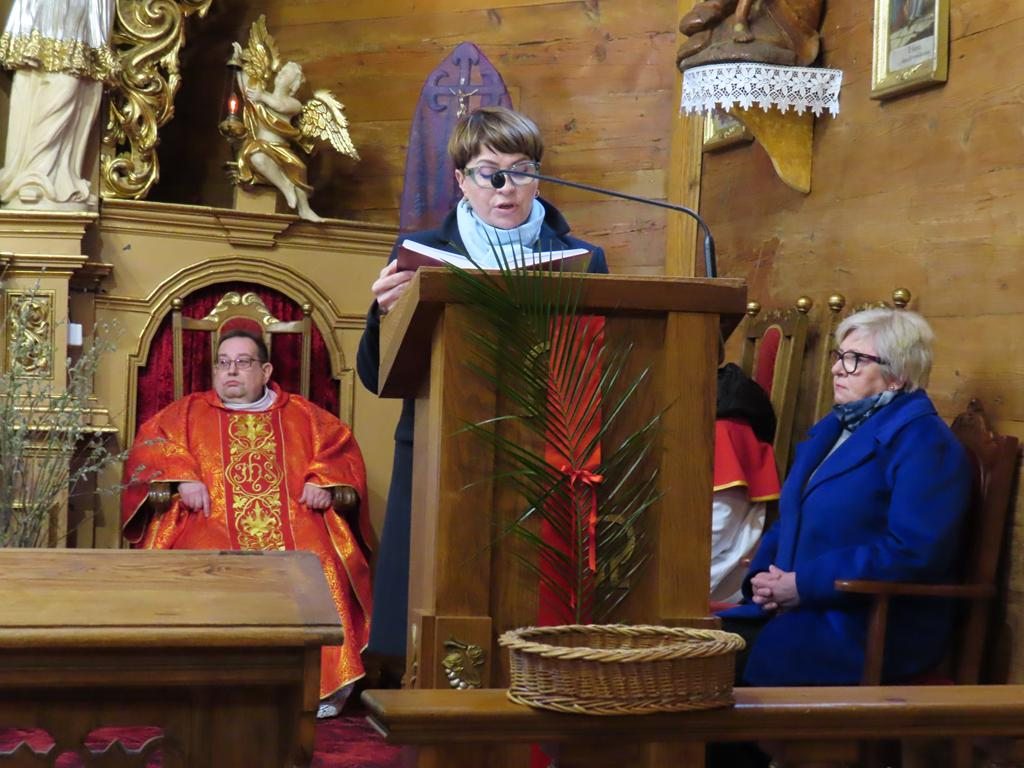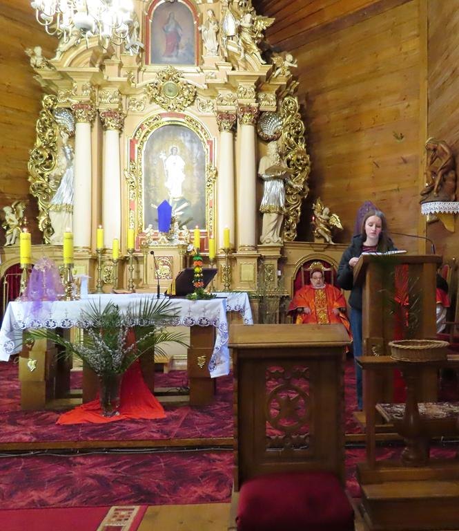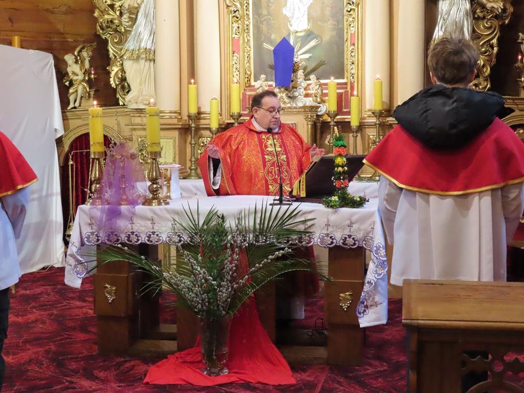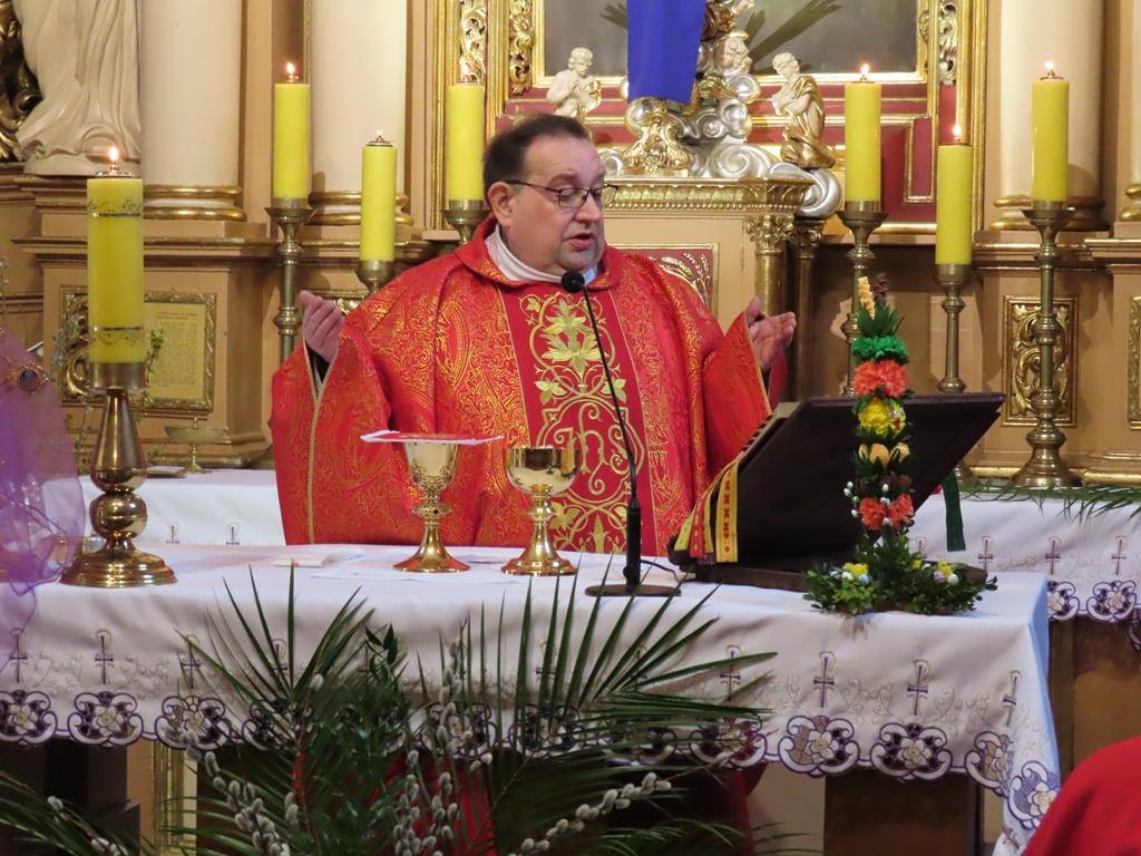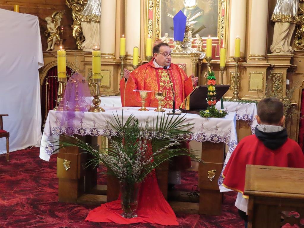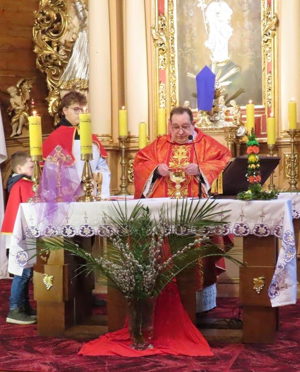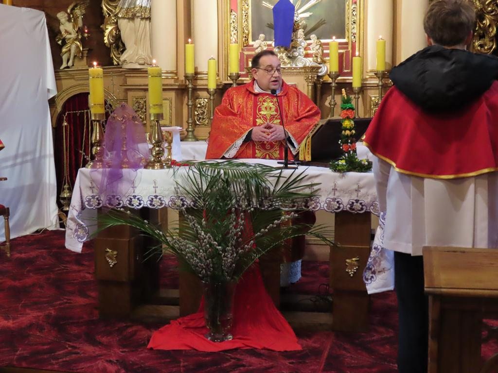 Parafianie, wierni tej tradycji, przynieśli do kościoła gałązki wierzbowe i palmy, które przed każdą Mszą św. kapłan błogosławił i poświęcił. W ostatnie godziny życia Jezusa, przepełnione samotnością, opuszczeniem i cierpieniem, wprowadziła wiernych odczytana przez kapłana Ewangelia o Męce Pańskiej według św. Mateusza. Ukazała jak szybko zachwyt tłumu przerodził się w przemoc, a tchórzostwo Piłata nie przeciwstawiło się złu.