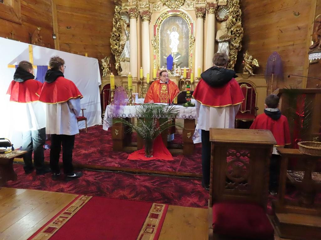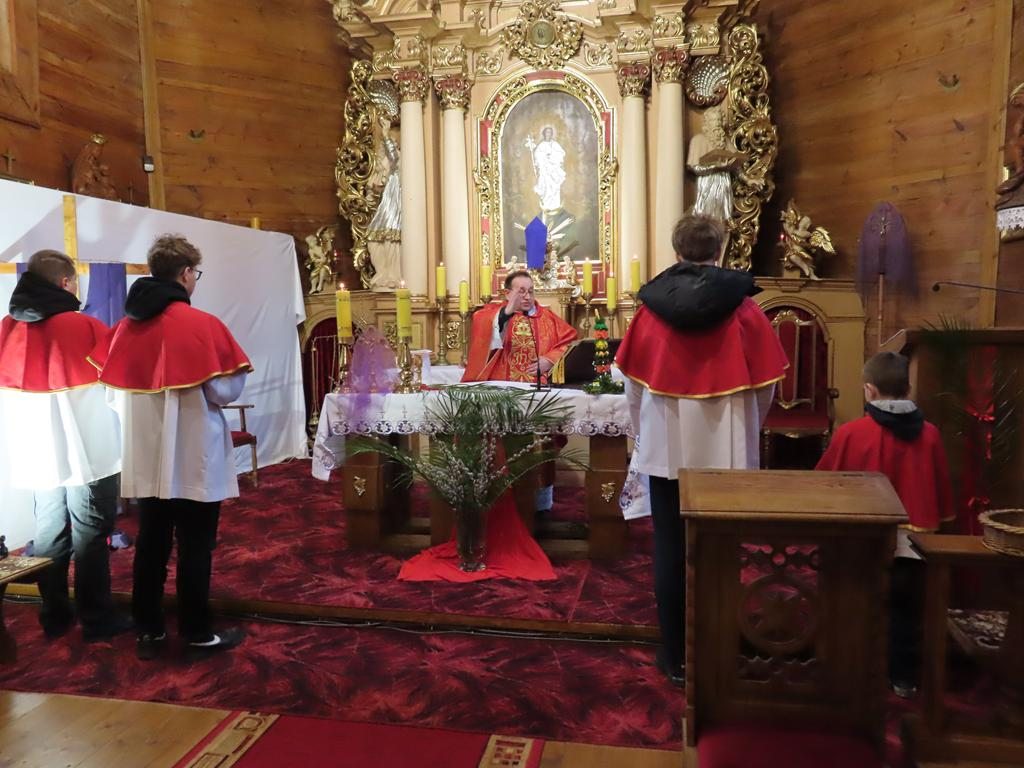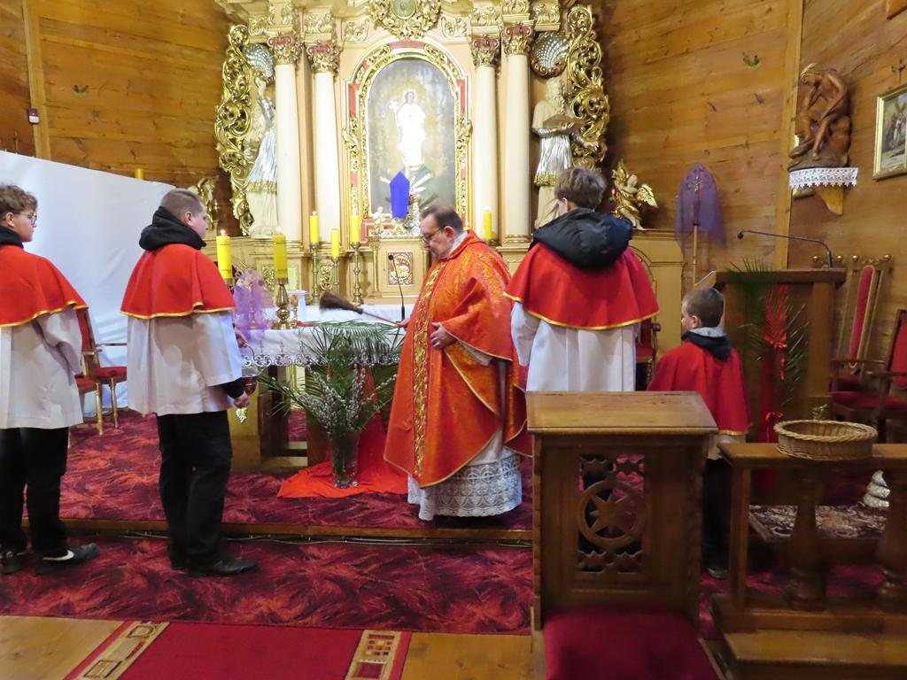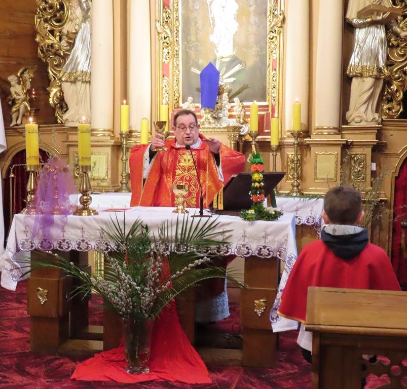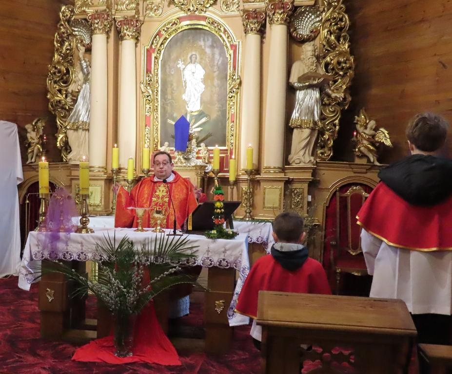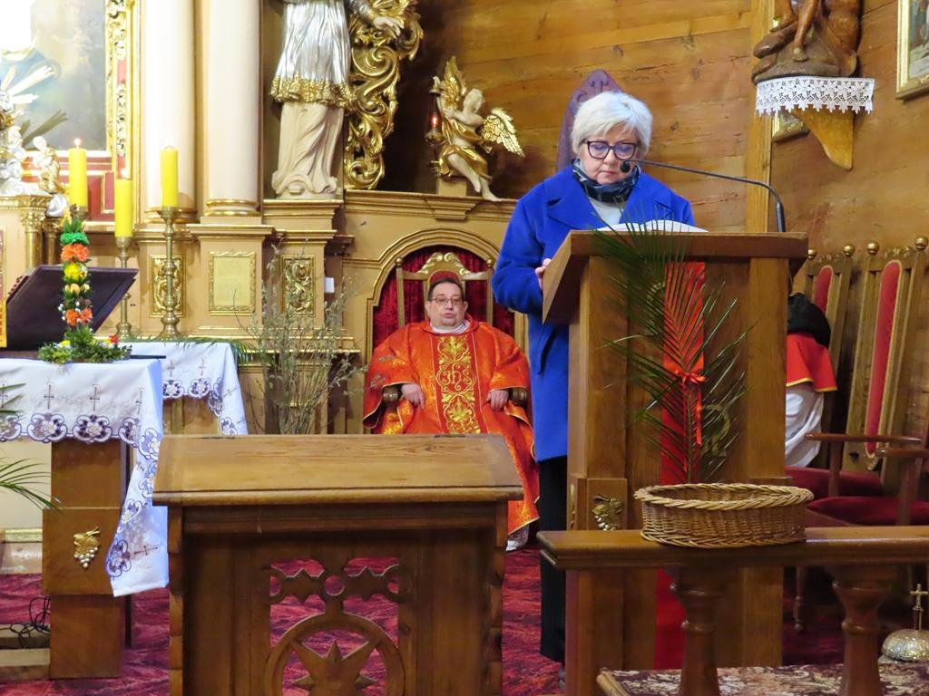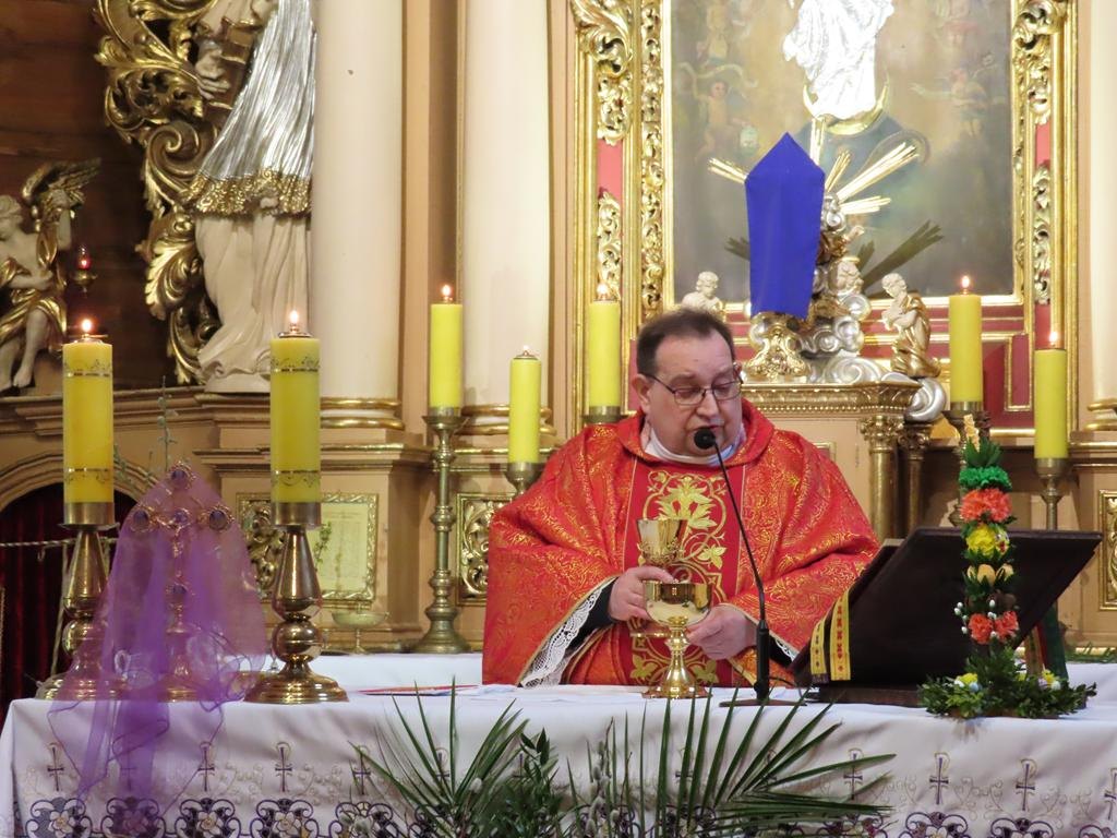 Parafianie, wierni tej tradycji, przynieśli do kościoła gałązki wierzbowe i palmy, które przed każdą Mszą św. kapłan błogosławił i poświęcił. W ostatnie godziny życia Jezusa, przepełnione samotnością, opuszczeniem i cierpieniem, wprowadziła wiernych odczytana przez kapłana Ewangelia o Męce Pańskiej według św. Mateusza. Ukazała jak szybko zachwyt tłumu przerodził się w przemoc, a tchórzostwo Piłata nie przeciwstawiło się złu.
