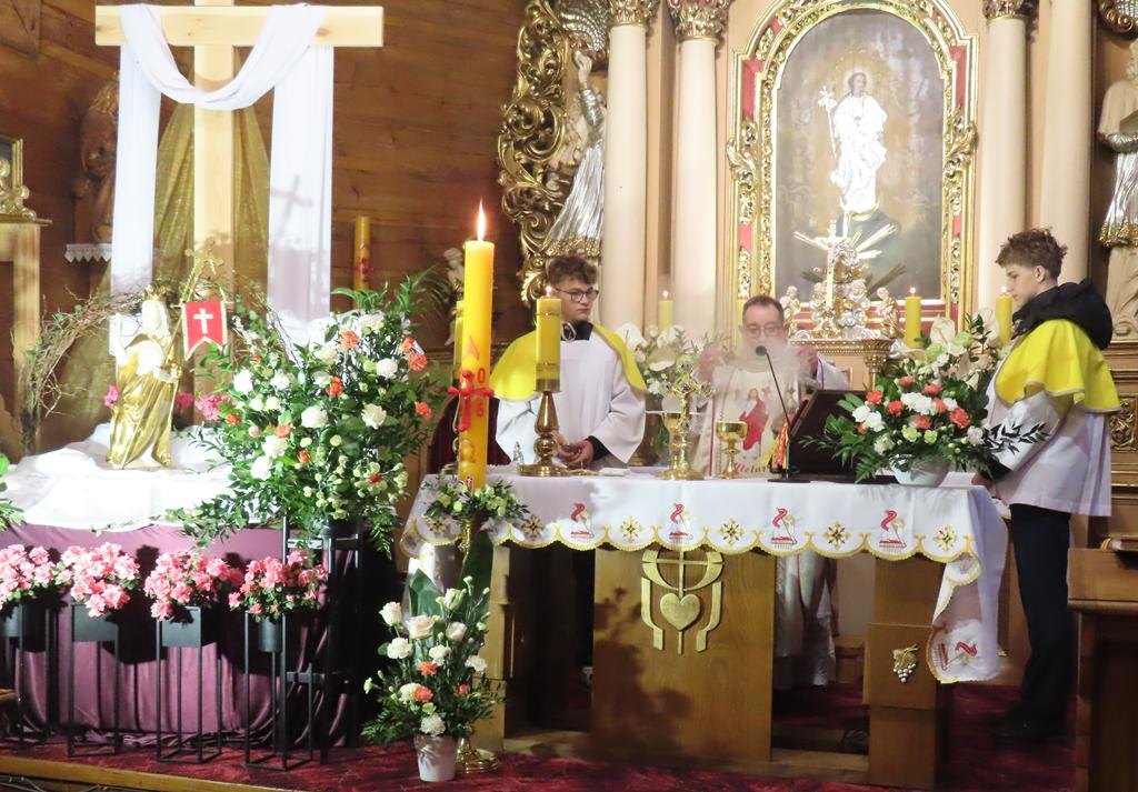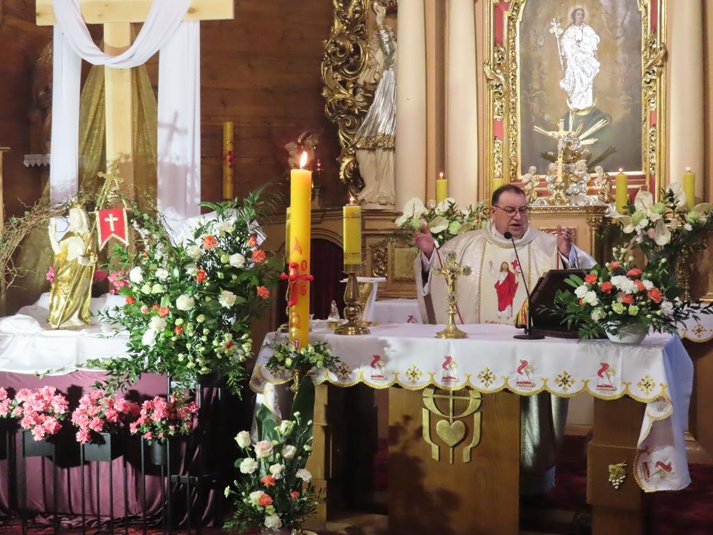 W Niedzielę Zmartwychwstania Pańskiego, Mszą rezurekcyjną o godz. 6.00, celebrowaliśmy zwycięstwo Chrystusa nad śmiercią. Przy biciu dzwonów i radosnym śpiewie pieśni wielkanocnych przeszła wokół kościoła procesja z Najświętszym Sakramentem, by obwieścić światu, że