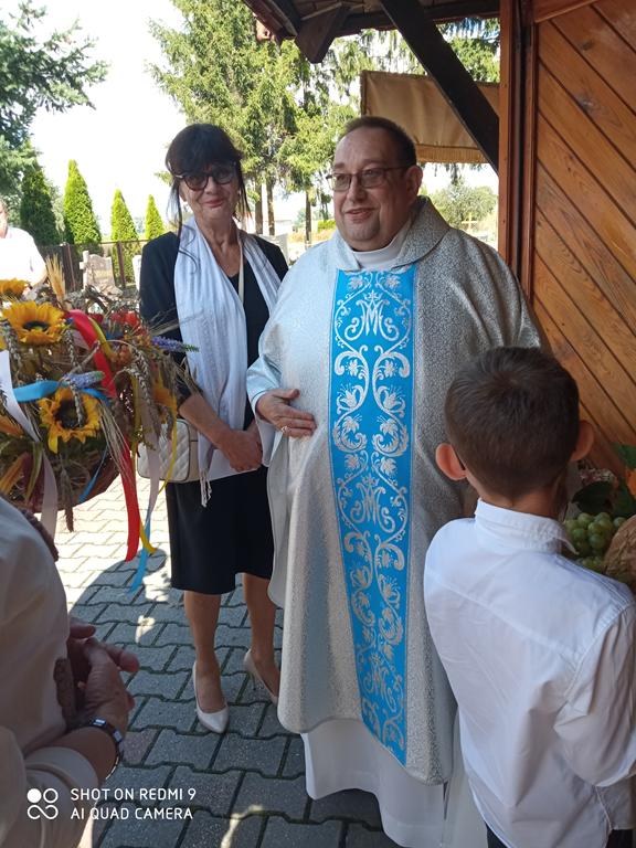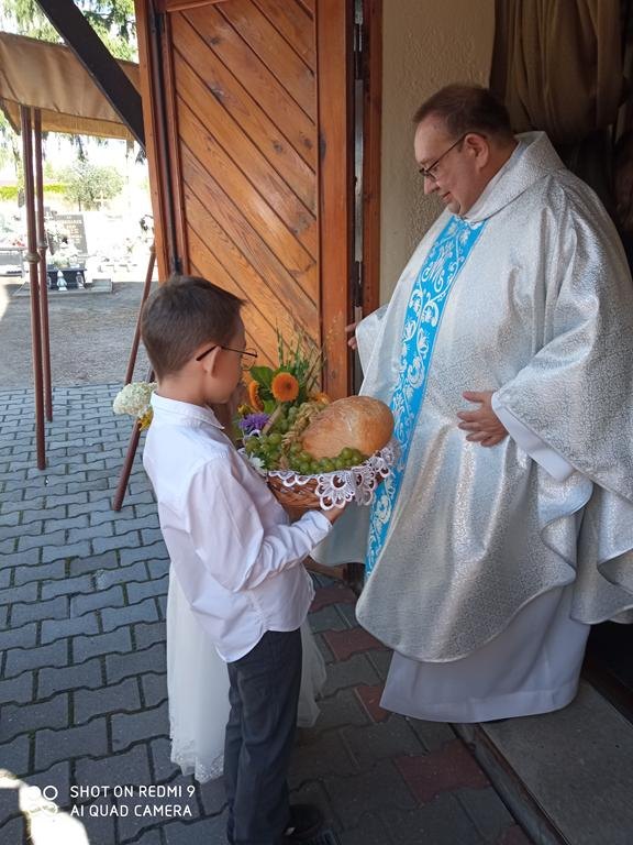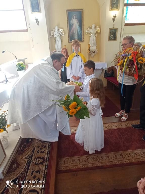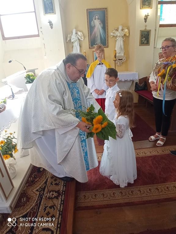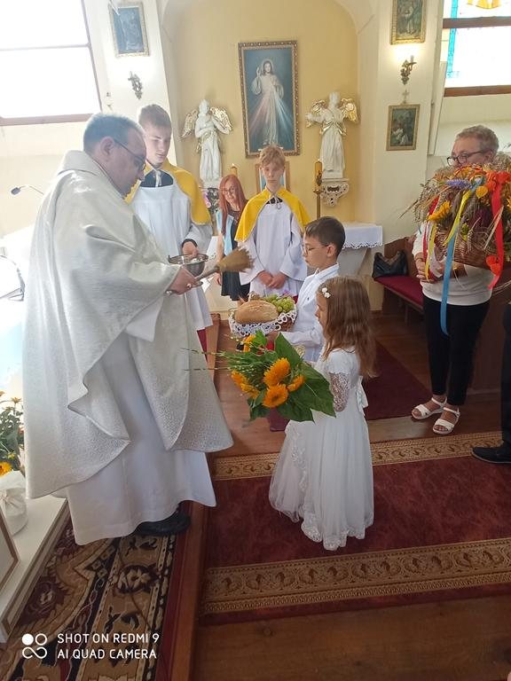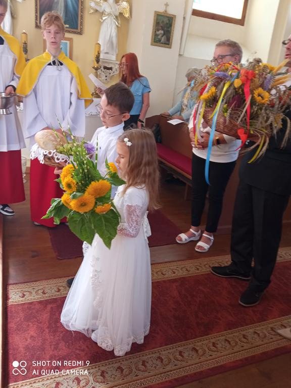 W kościele odprawiana jest wtedy Msza święta dziękczynna za zebrane plony, z poświęceniem wieńców dożynkowych, chleba i ziół. Rolnicy przynoszą do ołtarza dary – symboliczne owoce ziemi – a kapłan w kazaniu dziękuje Bogu i ludziom za trud pracy rolniczej.
