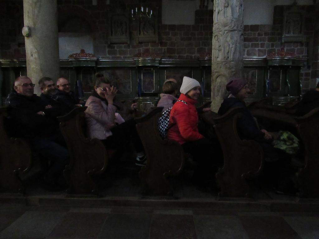 Pierwszym celem pielgrzymowania była bazylika p.w. Świętych Apostołów Piotra i Pawła w Kruszwicy. Po romańskiej kolegiacie i jej otoczeniu oprowadziła pielgrzymów pani przewodnik. Przybliżyła historię powstania trójnawowej budowli z XII wieku, noszącej cechy autentycznej świątyni romańskiej, wzniesionej z granitu i piaskowca oraz wyróżniającej się pięcioma absydami.