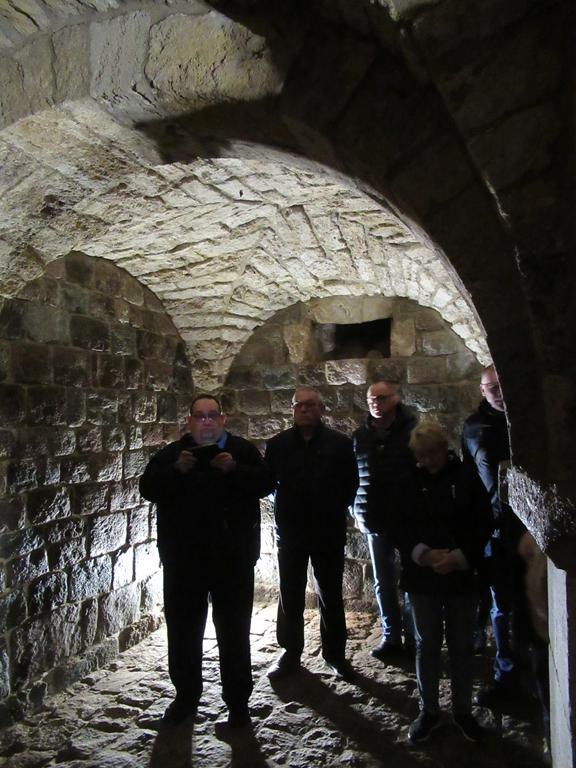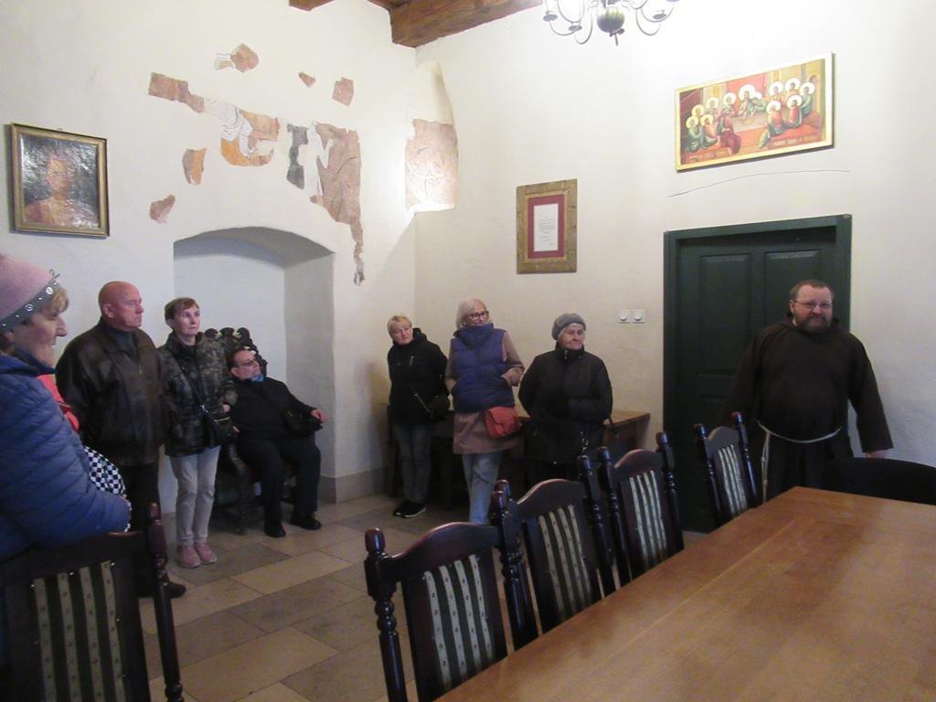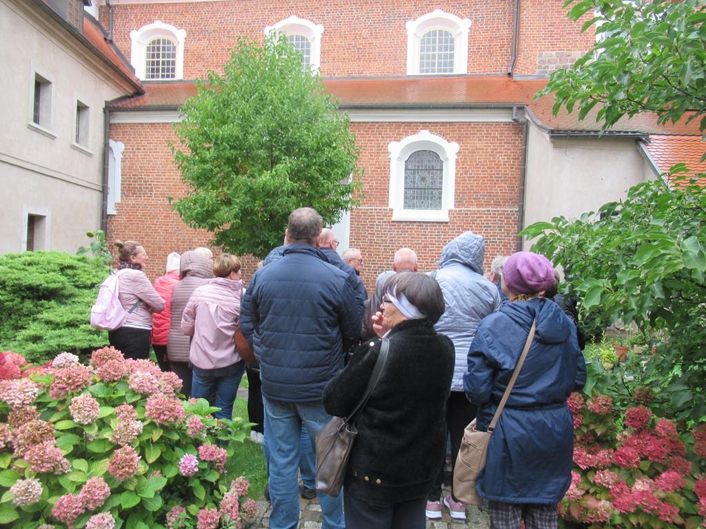 W Mogilnie zwiedzili kompleks klasztorny benedyktynów z XI wieku. Z wnętrzem  kościoła św. Jana Ewangelisty, z zachowanymi elementami gotyckich sklepień, zapoznał pielgrzymów benedyktyński zakonnik. Oprowadzając po podziemiach nakrytych kolebkowym sklepieniem przybliżył historię i dzieje zakonu benedyktynów. Spacer po krużgankach i wirydarzu z jedenastowieczną romańską studnią zakończył pobyt w klasztorze.