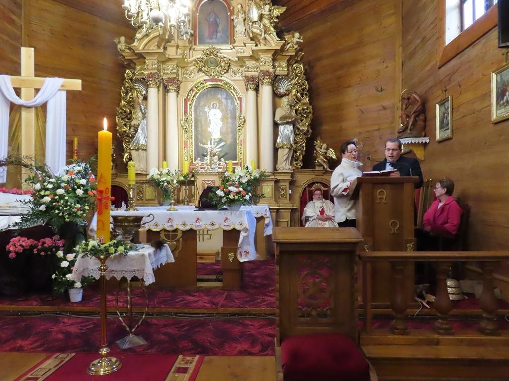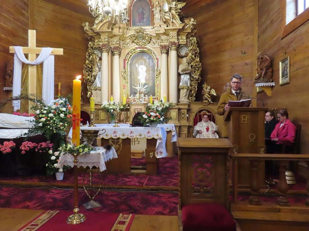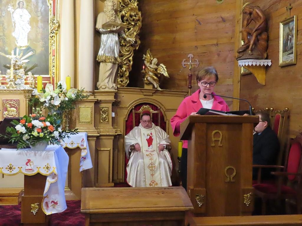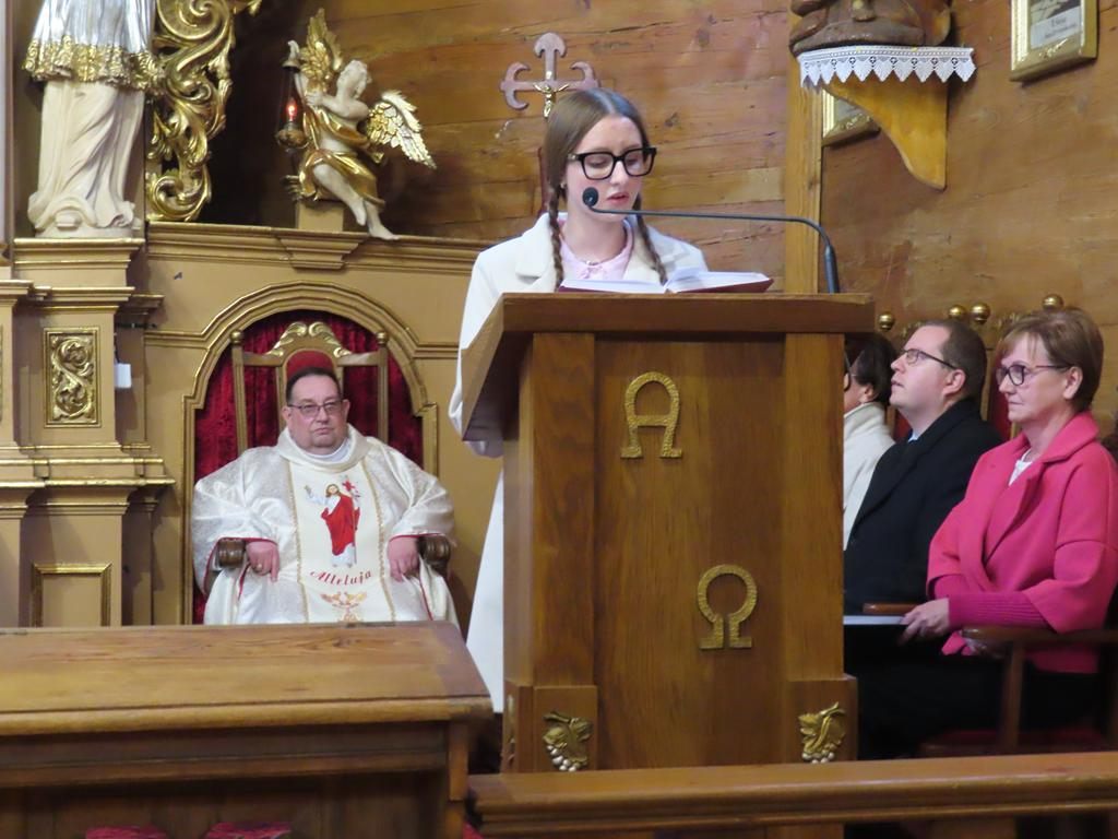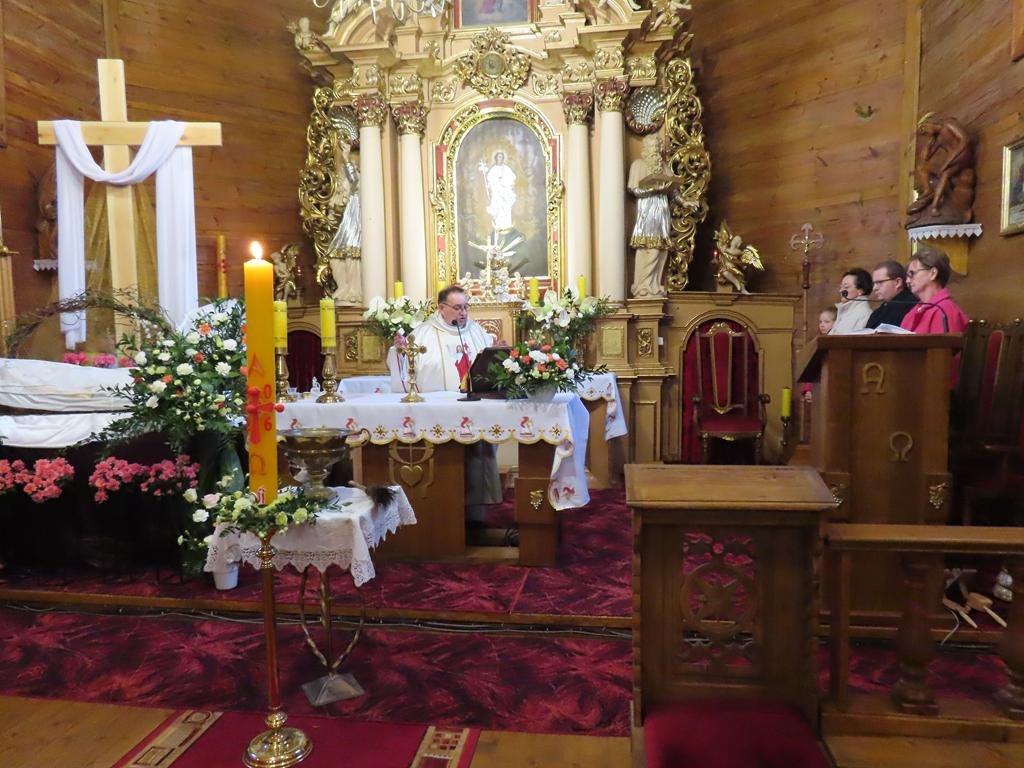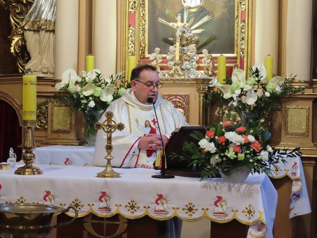 Podczas liturgii Eucharystii Jezus zaprosił wiernych do stołu, chcąc karmić wszystkich swoim Ciałem i Krwią. Pascha Chrystusa uobecniła w sposób sakramentalny mękę, śmierć i zmartwychwstanie. Błogosławieństwo oraz świąteczne życzenia księdza proboszcza zakończyły uroczystość. Przewodnikiem po pełnej symboliki Wigilii Paschalnej była pani Renata Szumera.